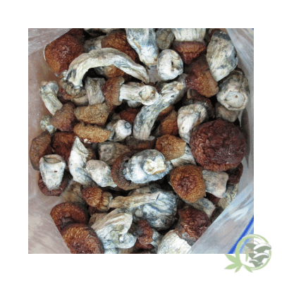 As a cubensis strain, Bluey Vuitton shares many traits with its relatives while also showcasing unique features. The dried mushrooms are pale in colour, primarily white with light bruising that develops into soft blue tones—an indication of psilocybin content. The stems are moderately thick compared to some slender cubensis varieties, averaging about half an inch in width, and the mushrooms are typically 1–2 inches long. The caps are often small to medium in size, rounded, and similarly pale, giving the entire batch a clean, minimalistic appearance that matches its refined name.